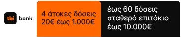 -Χωρίς πιστωτική κάρτα έως και 60 δόσεις Μέσω TBI Bank