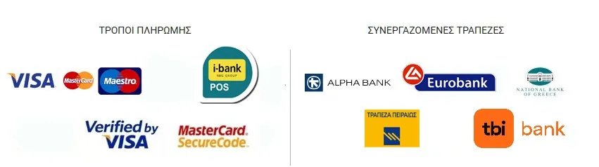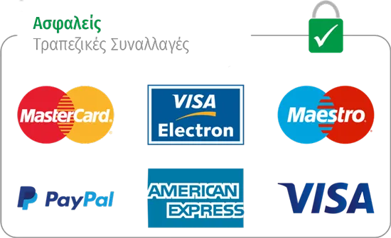 Δυνατότητα πληρωμής μέσω πιστωτικών, χρεωστικών και προπληρωμένων καρτών των Visa, MasterCard, Maestro, American Express.