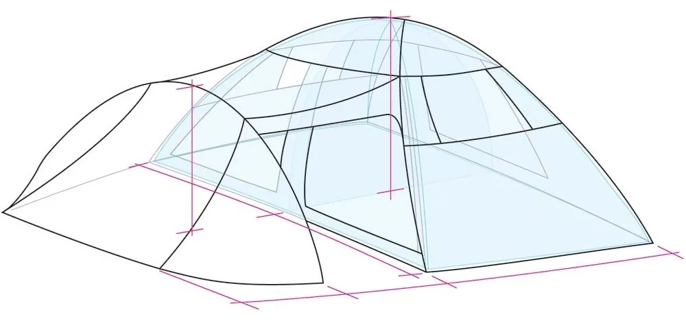 Η σκηνή Esape Comfort V διαθέτει δύο μεγάλα δωμάτια διαστάσεων 235x150 εκ. με ωφέλιμο ύψος 180 εκ. . Με άνετο χώρο για προσωπικά αντικείμενα, παροχή ρεύματος στα δωμάτια και πολλές πόρτες και παράθυρα που εξασφαλίζουν δροσιά και άνεση.