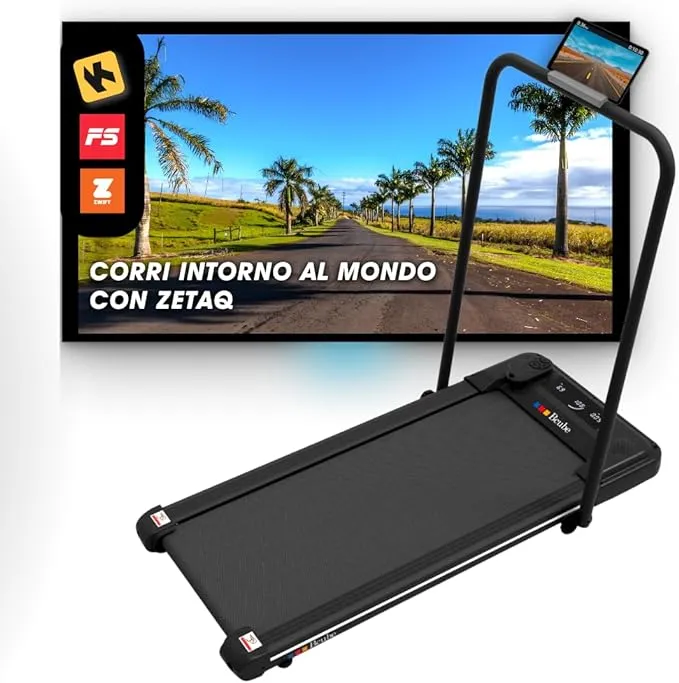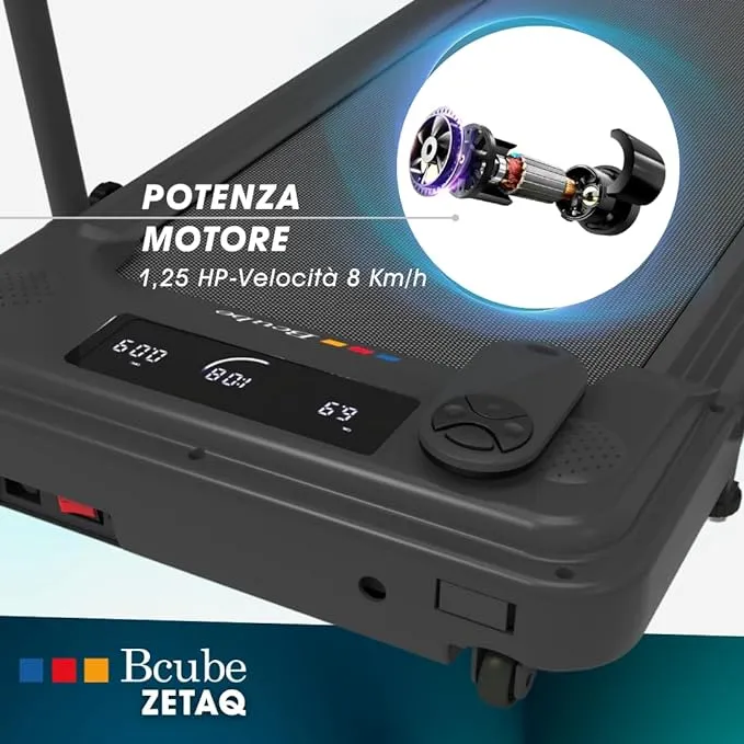 Χάρις στην Super-Compact κατασκευή του ο ηλεκτρικός διάδρομος Bcube ZetaQ είναι η ιδανική λύση για μια αποδοτική και παράλληλα οικονομική εκγύμναση στο σπίτι. Διαθέτει έναν αξιόπιστο κινητήρα 1.25HP και στιβαρή κατασκευή που επιτρέπει μια άνετη και ασφαλή άσκηση για χρήστες έως και 100 κιλά ενώ το αντικραδασμικό του deck προστατεύει τις αρθρώσεις σας από τους τραυματισμούς. Η οθόνη LED υψηλής φωτεινότητας έχει τοποθετηθεί στο μπροστινό μέρος του deck ώστε να σας δίνει όλες τις απαραίτητες πληροφορίες κατά την διάρκεια της άσκησης. Συνδέοντας το tablet / smartphone σας μέσω bluetooth, κατεβάζοντας τις συμβατές fitness εφαρμογές Kinomap, Zwift, Zsport και FitShow, "αποκτάτε πρόσβαση" σε νέες λειτουργίες που θα κάνουν την προπόνηση σας πιο διασκεδαστική από ποτέ.