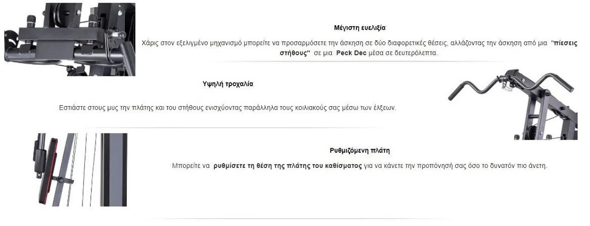- Πολλαπλά Training stations για προπόνηση ολόκληρου του σώματος