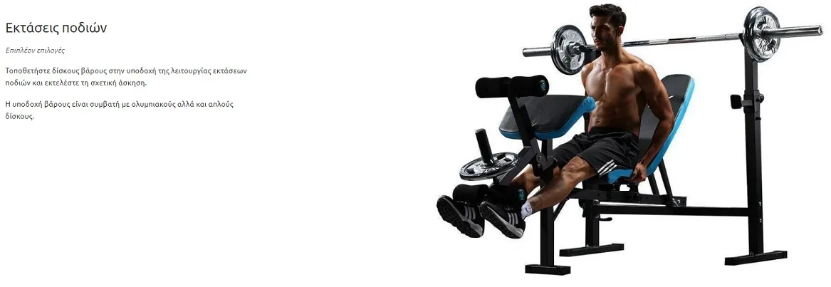 - Λειτουργία εκτάσεων ποδιών: Συμβατή με απλούς ή και ολυμπιακούς δίσκους