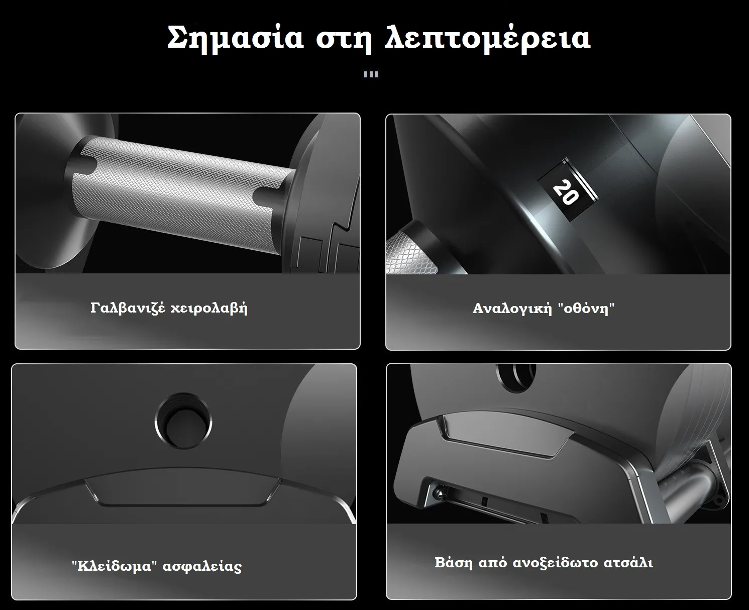 - Διαβαθμίσεις κιλών: 2Kg – 4kg – 8kg – 12kg – 16kg – 20kg